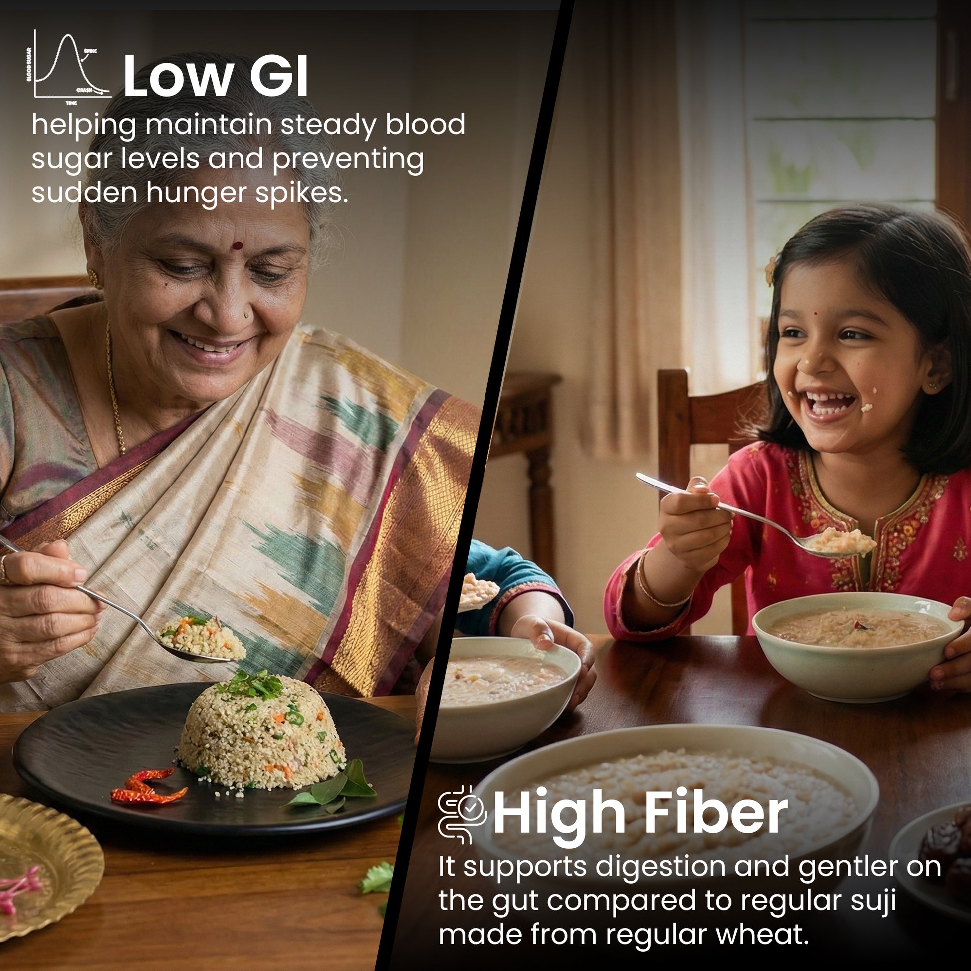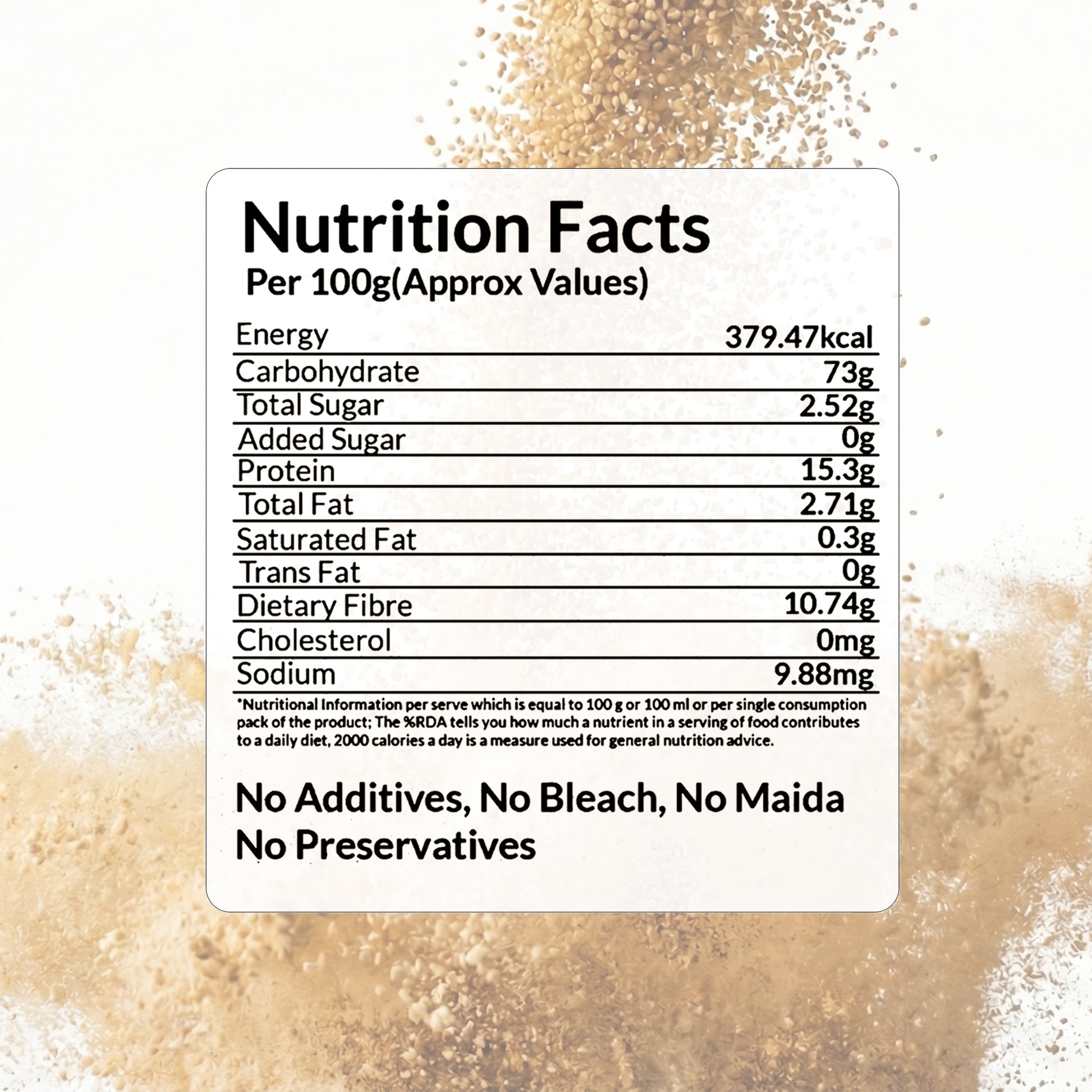 ensure the natural goodness of the wheat, providing essential nutrients and dietary fiber. With a 50% low glycemic index and 50% high fiber, this flour ensures a slow and steady release of energy, helping to maintain stable blood sugar levels and preventing sudden spikes.