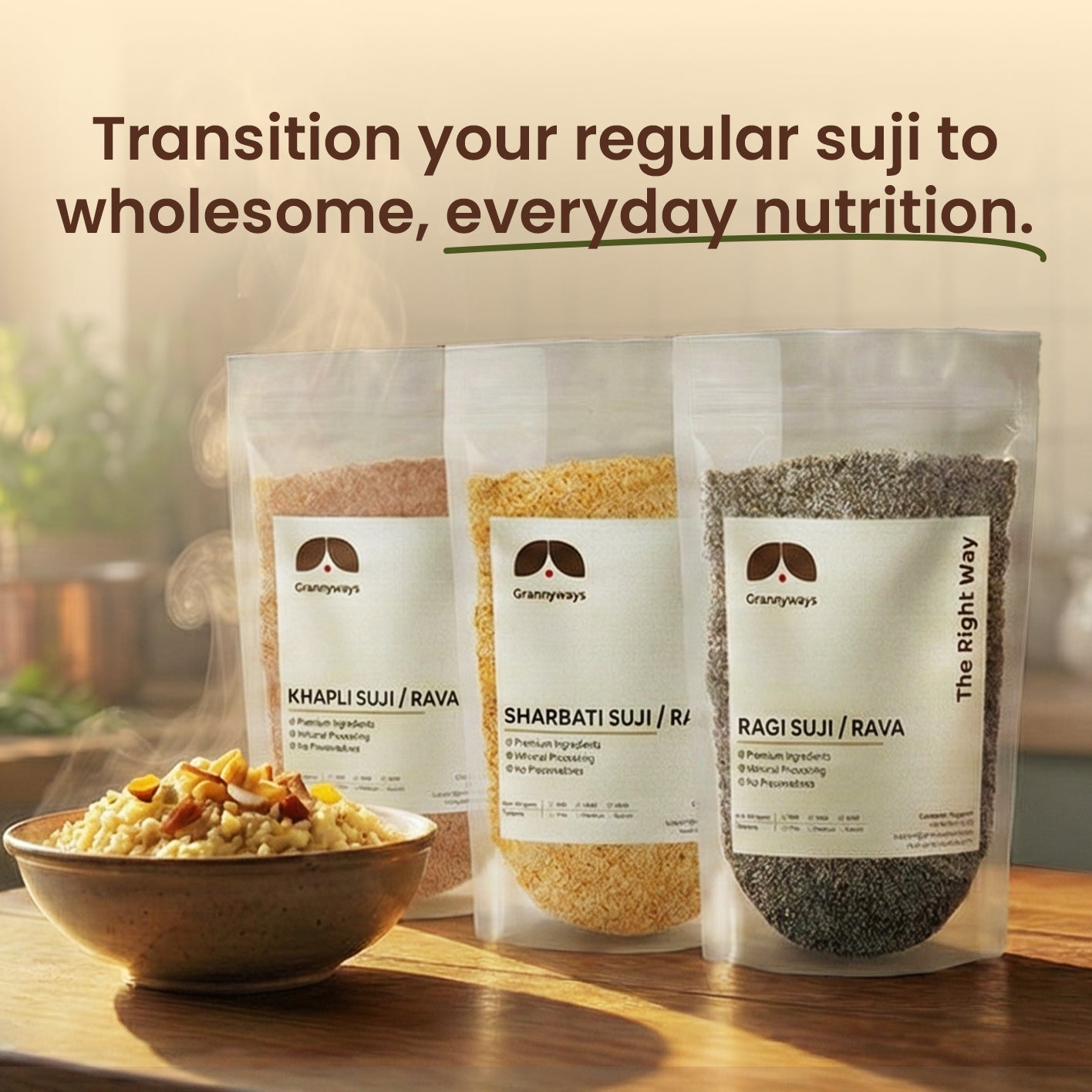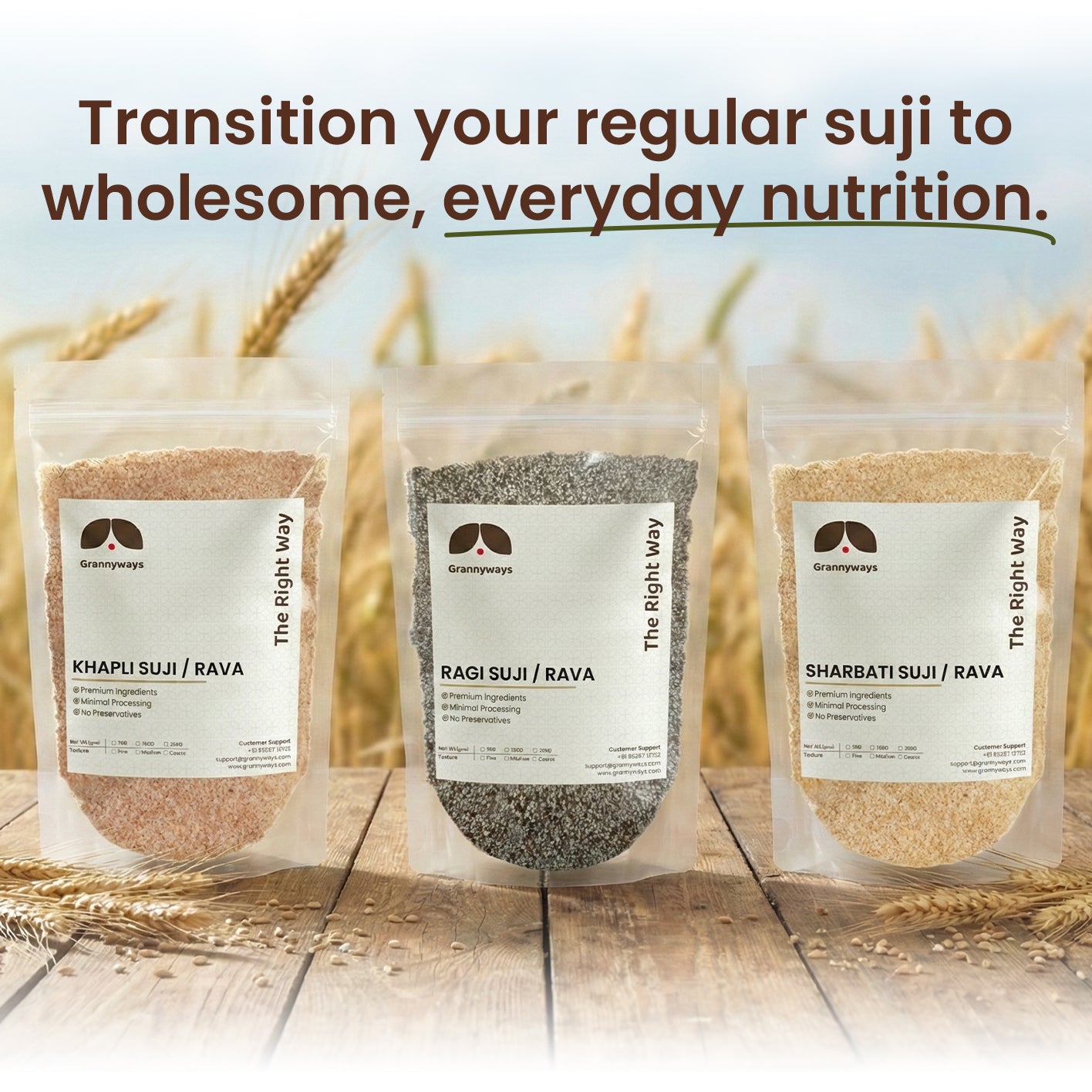 Grannyways Khapli atta is made from ethically sourced from the farms of Karnataka and Maharashtra borders and traditionally grown Khapli/Emmer wheat, this atta is packed with nutrients and flavors that will elevate your meals to new heights. Grannyways Khapli atta is a